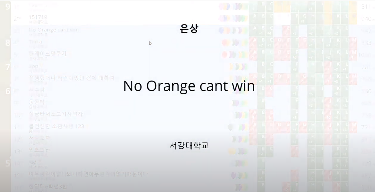 사실 1, 2등 팀에도 오렌지가 있으니 Orange can win이 틀린 말은 아니긴 하다.