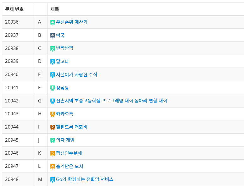 문제 난이도는 다음과 같다. (21.03.02 12:00 기준)