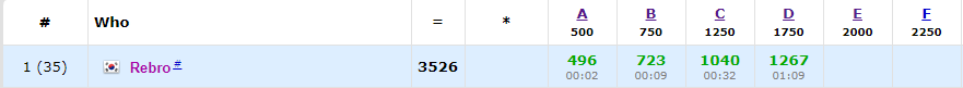 개인적으로 E보다 훨씬 쉬운 듯 한데 규칙 찾는 문제라 Div.1에서는 E보다 덜 풀렸고 난이도가 더 높은 것 같다.