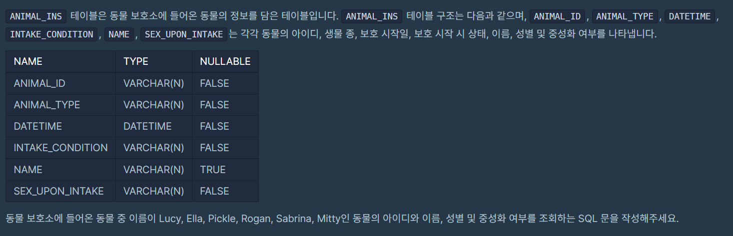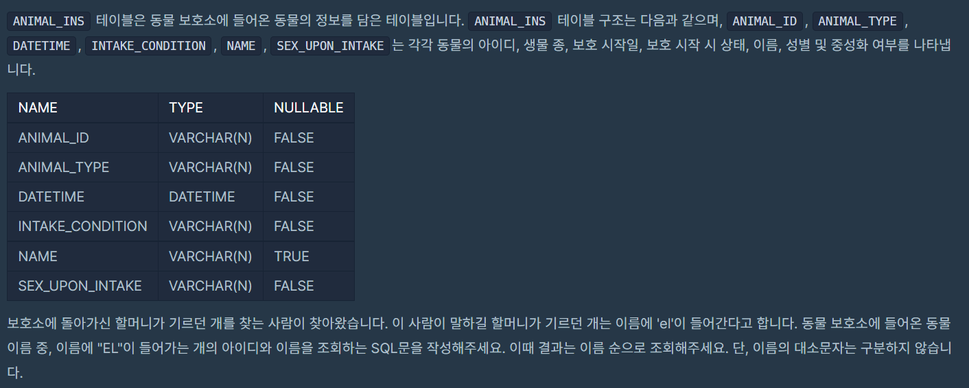 - 문제명 : 이름에 el이 들어가는 동물 찾기