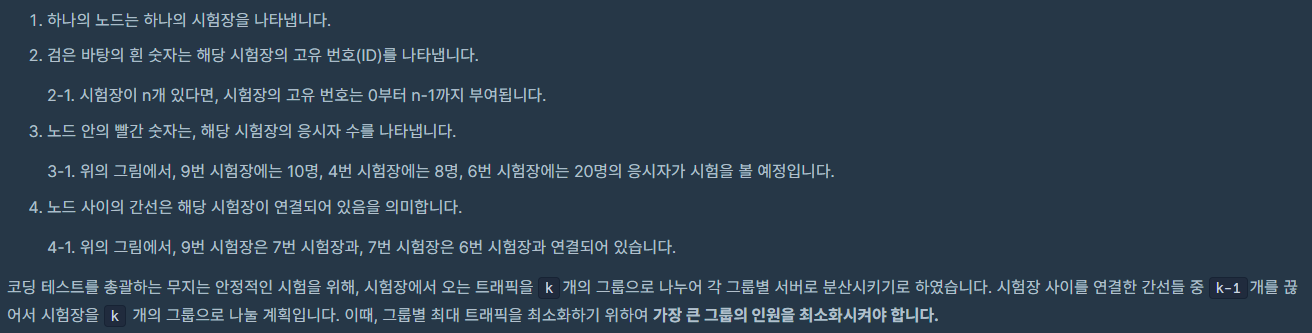따라서 모든 간선 중에서 k개를 고르는 경우는 대략 $_{10000}C_k$ 이므로 당연히 효율성을 통과하지 못하게 된다.