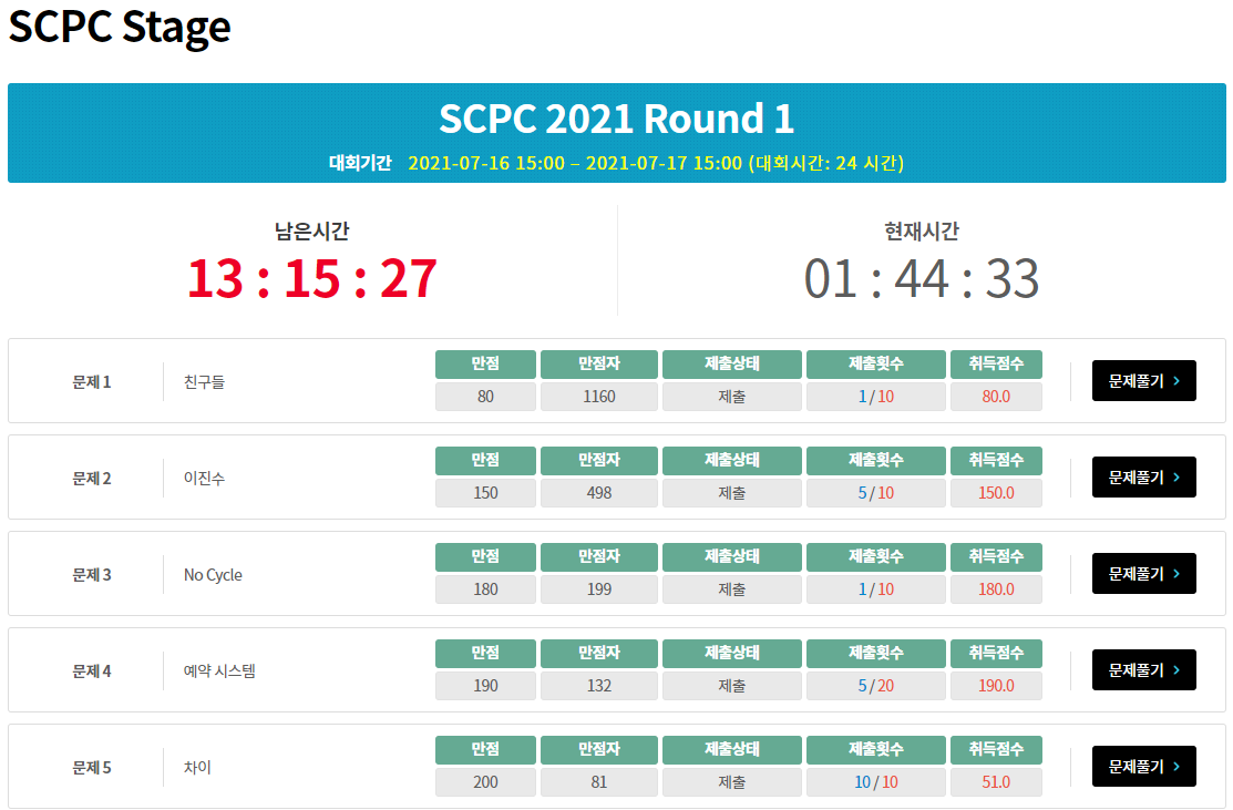 SCPC 2021 Round 1에 참가하였다.