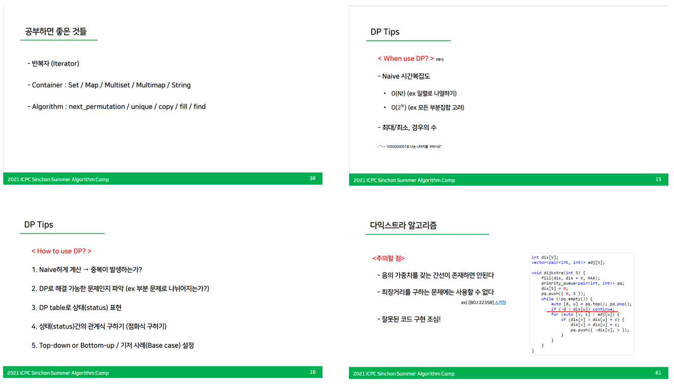 이번 캠프 이전에 2020 여름 캠프와 2021 겨울 캠프를 수강생으로 참가했었을 당시, 매우 퀄리티 높은 강의를 들었기 때문에 그냥 당연하게 강의를 하면 저 정도는 해야 하는구나 하고 생각했다. 그래서 평소에 내가 푼 문제 하나조차도 논리 정연하게 설명 못하는 수준이었기에 아예 강의라는 게 머릿속에 존재하지 않았다.