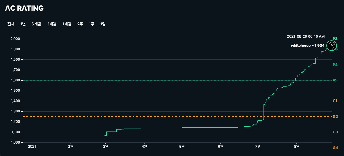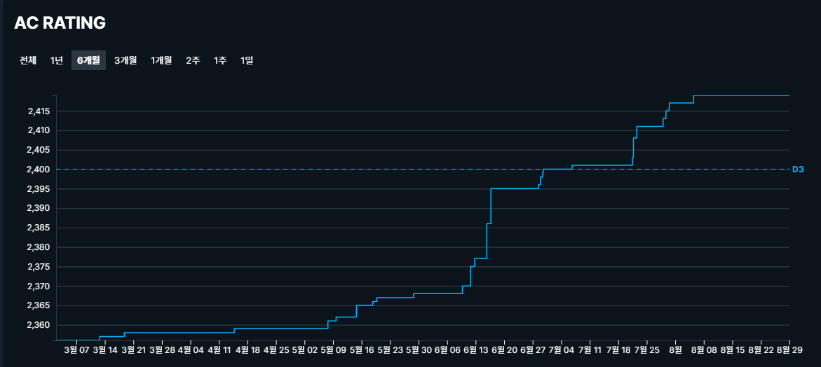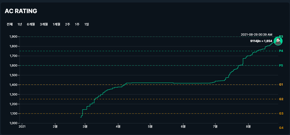"그래도 하루 3문제는 풀어야지", "3문제씩 한 달 내내 풀어도 90문제밖에 안된다" 등의 쓴소리를 내뱉던 나는 8월 한 달간 AC레이팅을 단 2만큼 올렸다.... 죄송합니다...