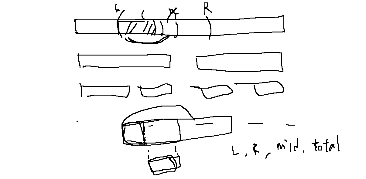 조금 아쉬웠던 문제이다. 사실 L은 꽤 이른 시간에 문제를 읽었었다. 처음엔 2D 세그나 펜윅을 떠올렸지만 테이프의 형태가 너무 다양해서 쉽지 않을 것 같았다. 테이프가 한 줄씩 붙여진다면 쉬운데, 꺾인 형태로 붙여지기 때문에 그에 따른 어려움이 어디서 발생할까 생각하다가 꼭짓점을 기준으로 나누어야겠다는 생각을 했고, 따라서 왼쪽 끝과 오른쪽 끝을 반드시 포함하는 구간의 최대합을 구할 수 있는 금광 세그를 떠올렸다.