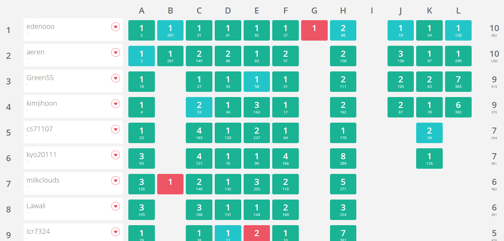 팀원이 누구든 간에 어쨌든 스코어보드엔 내가 적혀있고, 다들 지켜보고 있으니 아래 등수에 위치하기가 싫었고 은근 부담도 되었다.
