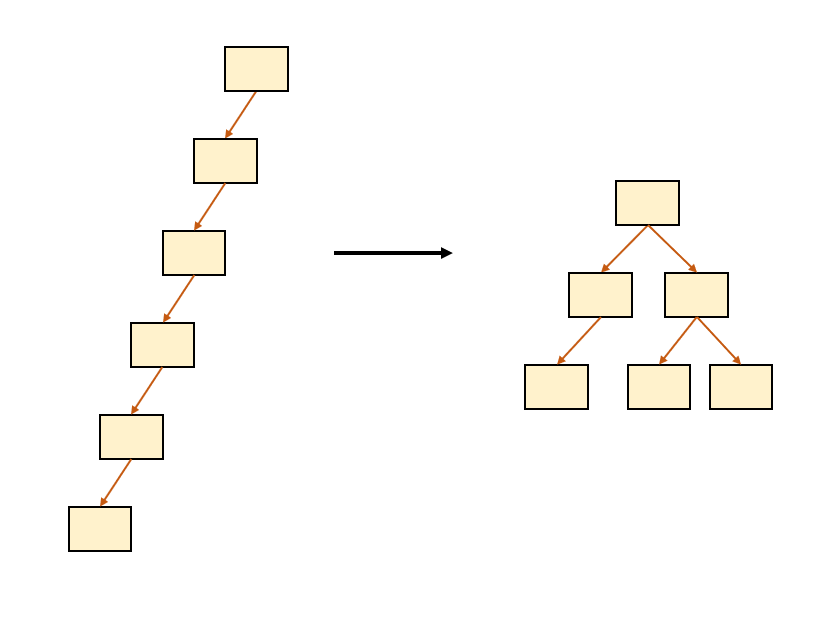 root node부터 탐색을 한다고 가정하고, 왼쪽처럼 편향된 트리에서 leaf node까지 탐색한다면 모든 node를 방문하기 때문에 O(N)의 시간이 걸리게 된다. 이러한 단점을 보완하기 위해 트리가 편향되지 않도록 항상 밸런스를 유지하는 트리가 필요하다. 자식들의 밸런스를 잘 유지하면 최악의 경우에도 O(logN)의 시간이 보장된다.