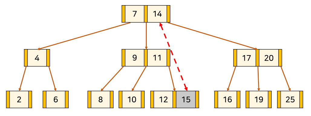 K를 par로 바꿔준다. 그리고 par를 왼쪽 형제 node의 key 수가 최소보다 크다면 Lmax로, 오른쪽 형제 node의 key 수가 최소보다 크다면 Rmin로 바꿔준다.