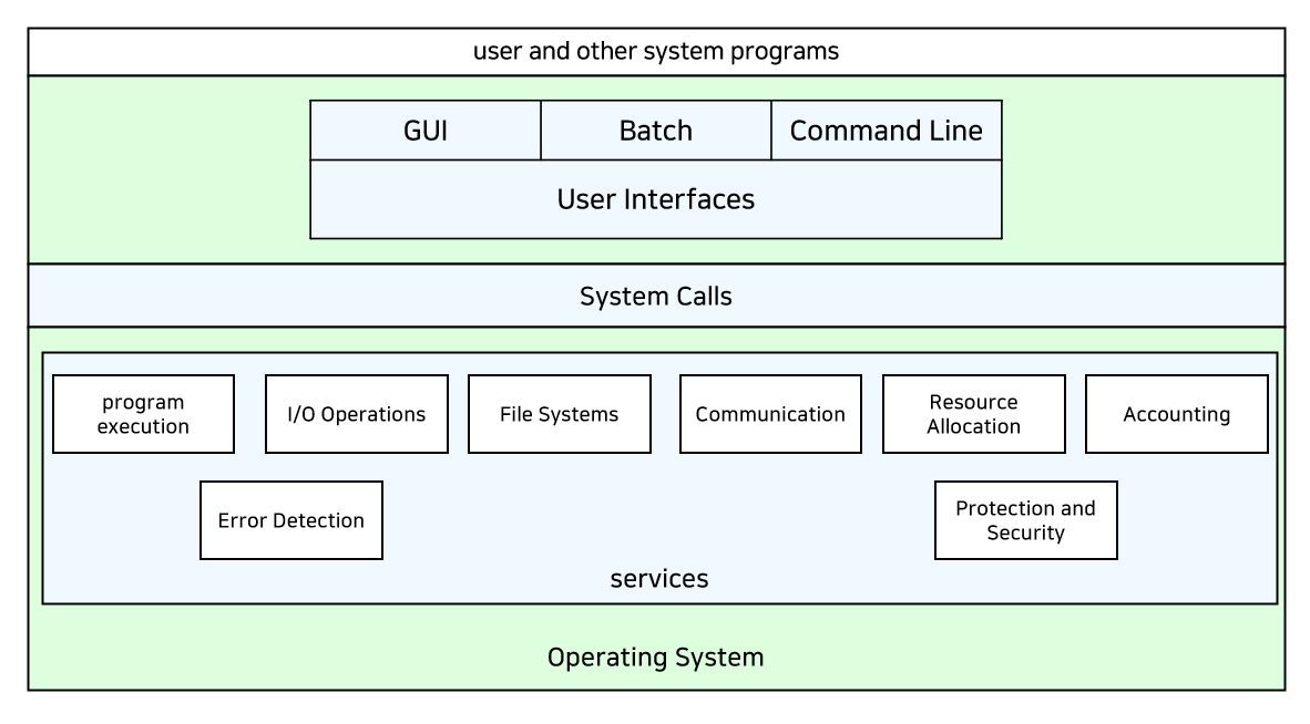 - UI는 사용자와 컴퓨터 시스템이 만나는 지점을 말한다. 거의 모든 운영체제가 UI를 가지고 있다.