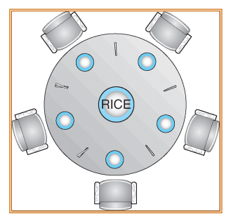 5명의 철학자가 원탁에 둘러앉아있고, 젓가락도 5개가 놓여있다.