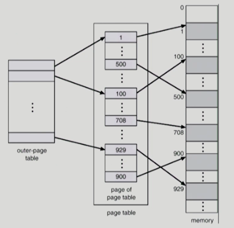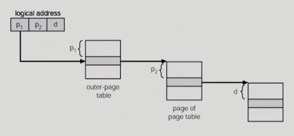 논리적 주소 공간을 여러 단계의 page table로 분할하여 오직 사용되는 page의 page table만 할당하는 기법이다. 이를 통해 각각의 page table이 Noncontiguously 하게 할당되도록 하는 것이 목표이다.