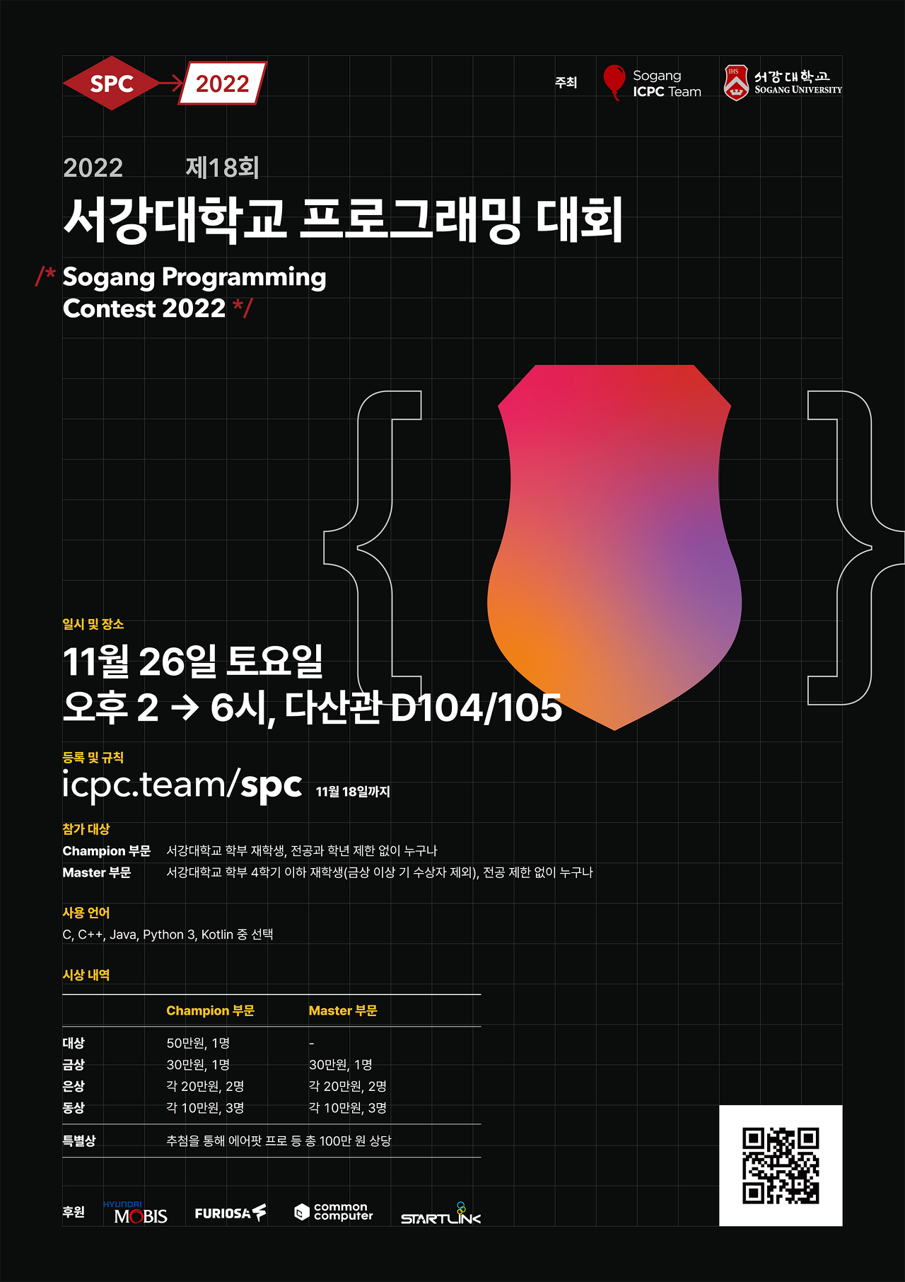 ICPC가 끝나고 다음 주에 바로 교내 프로그래밍 대회인 SPC(Sogang Programming Contest)가 있었다.
