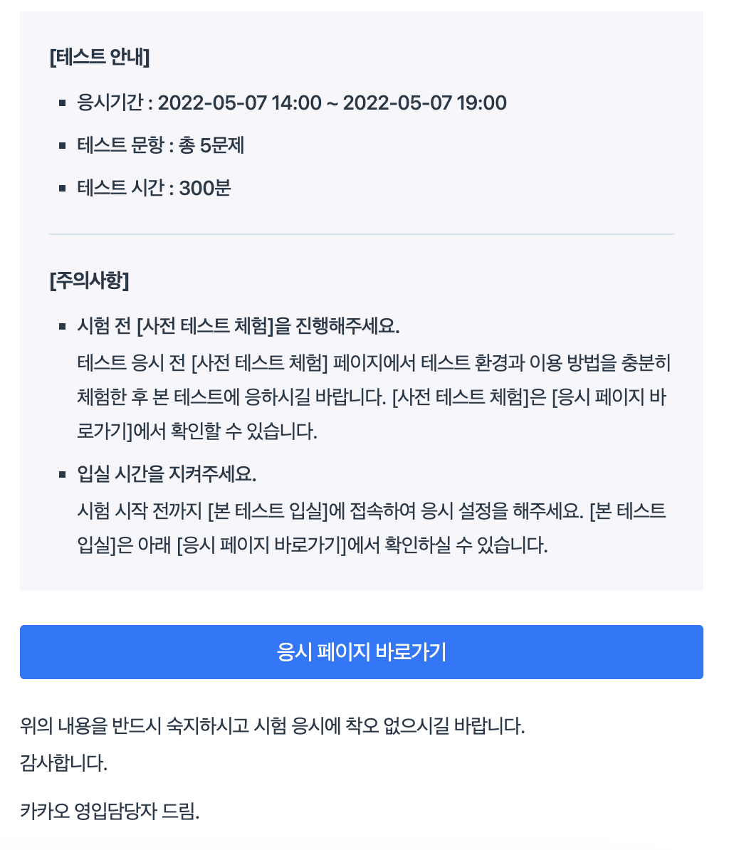 카카오 여름 인턴 지원과정은 나에게 여러모로 큰 경각심을 준 경험이었다.