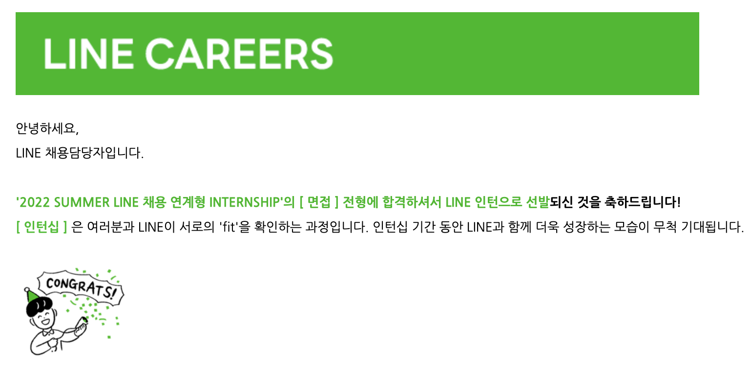 2022 SUMMER LINE 채용 연계형 인턴십합니다. 모집인원은 00명이며 기타 분야의 인재들은 지원해주세요!