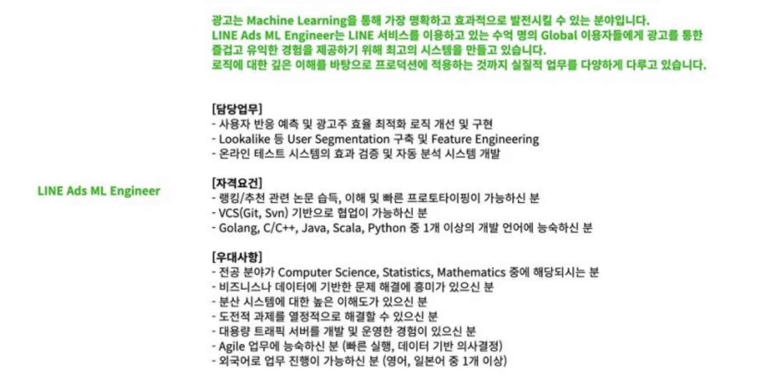 인턴은 7~8월 두 달 동안 진행했고, 인턴 기간 내내 재택근무였다. 직무는 정확히 Ads ML Engineering이었다. 즉, 라인에서 제공하는 광고와 관련된 업무였다. 한국에서 서비스되는 LINE 메신저에는 광고가 나오진 않지만, 다른 나라들에선 많이 제공되고 있다.