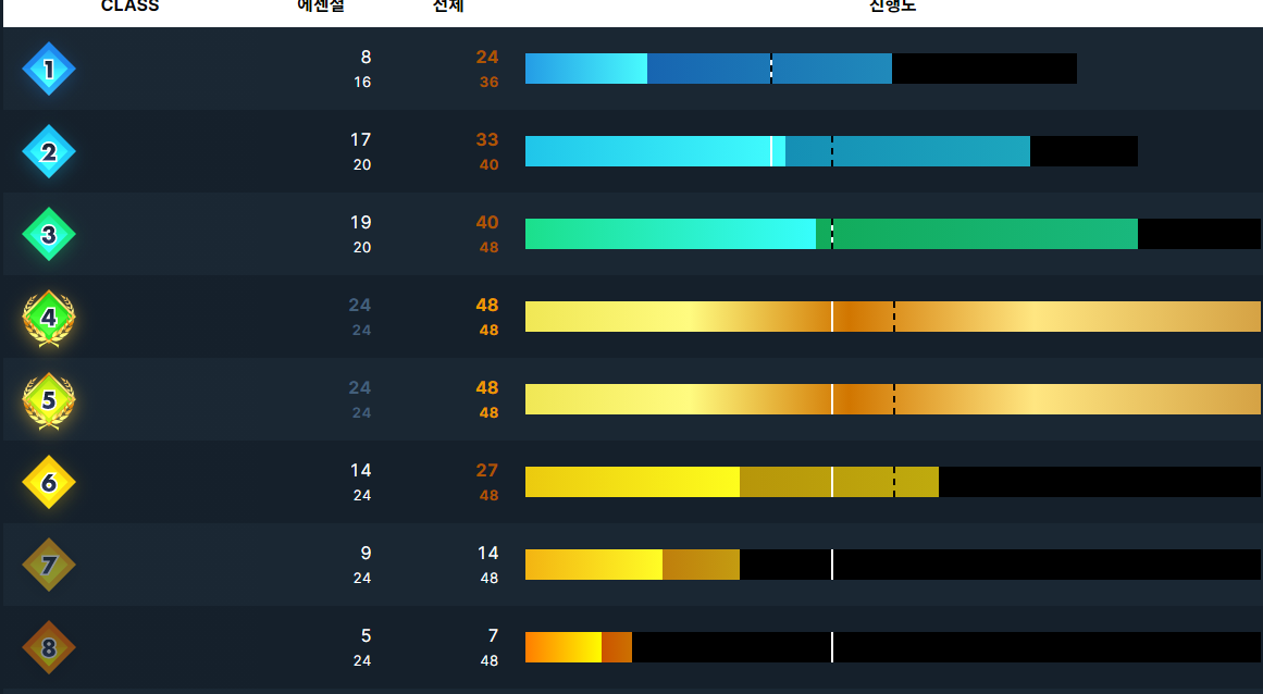 개인적으로는 solved.ac CLASS를 미는 게 되게 좋은 것 같다. 난이도나 문제 구성도 잘 되어있고 저 막대바가 채워지는 맛이 있다....ㅎ 누군가 PS에 흥미가 안 생긴다고 말한다면 강력 추천할 것 같다.