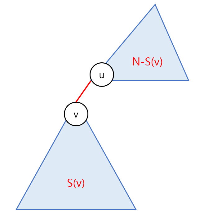 (1)에서 S(v)의 노드 수 * (u, v)의 가중치를 빼면, S(v)의 모든 노드로부터 v까지의 거리의 합과 동일하다.